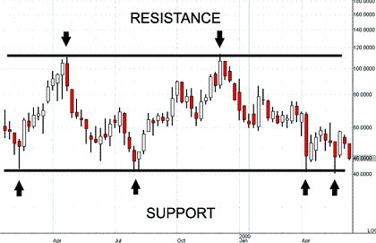 Rapidement et pour avoir une idée de ce que peuvent donner les indicateurs techniques dits « manuels », en reliant sur les graphiques au moins 2 sommets, on obtient une résistance et à l’inverse, en reliant 2 « plus bas », on obtient un support. Lorsque le cours approchera d’un support ou d’une résistance, on saura donc maintenant qu’il faut se méfier.